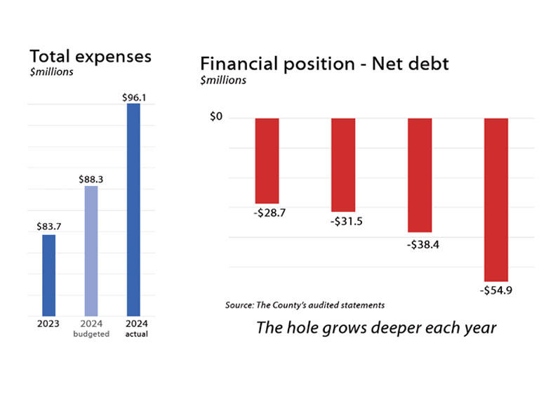 Costs rise, debt grows as financial stress mounts The County’s financial picture deteriorated badly in 2024. According to newly released audit statements, municipal costs soared last year—far exceeding 2023 and much higher than budgeted. Salaries and wage expenses spiked up 13.5 per cent. Interest payments jumped 33 per cent, while materials and supplies—the things needed […]