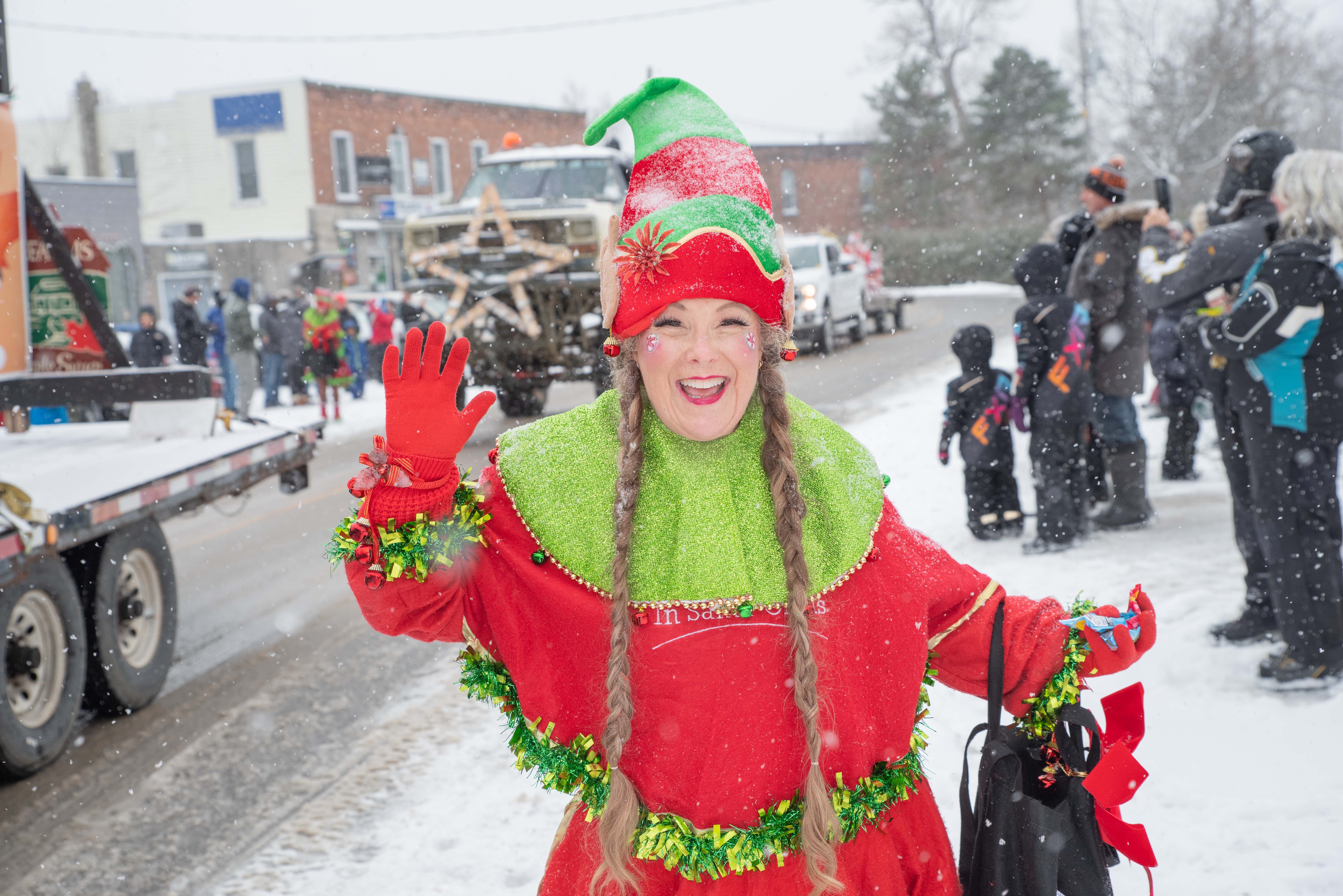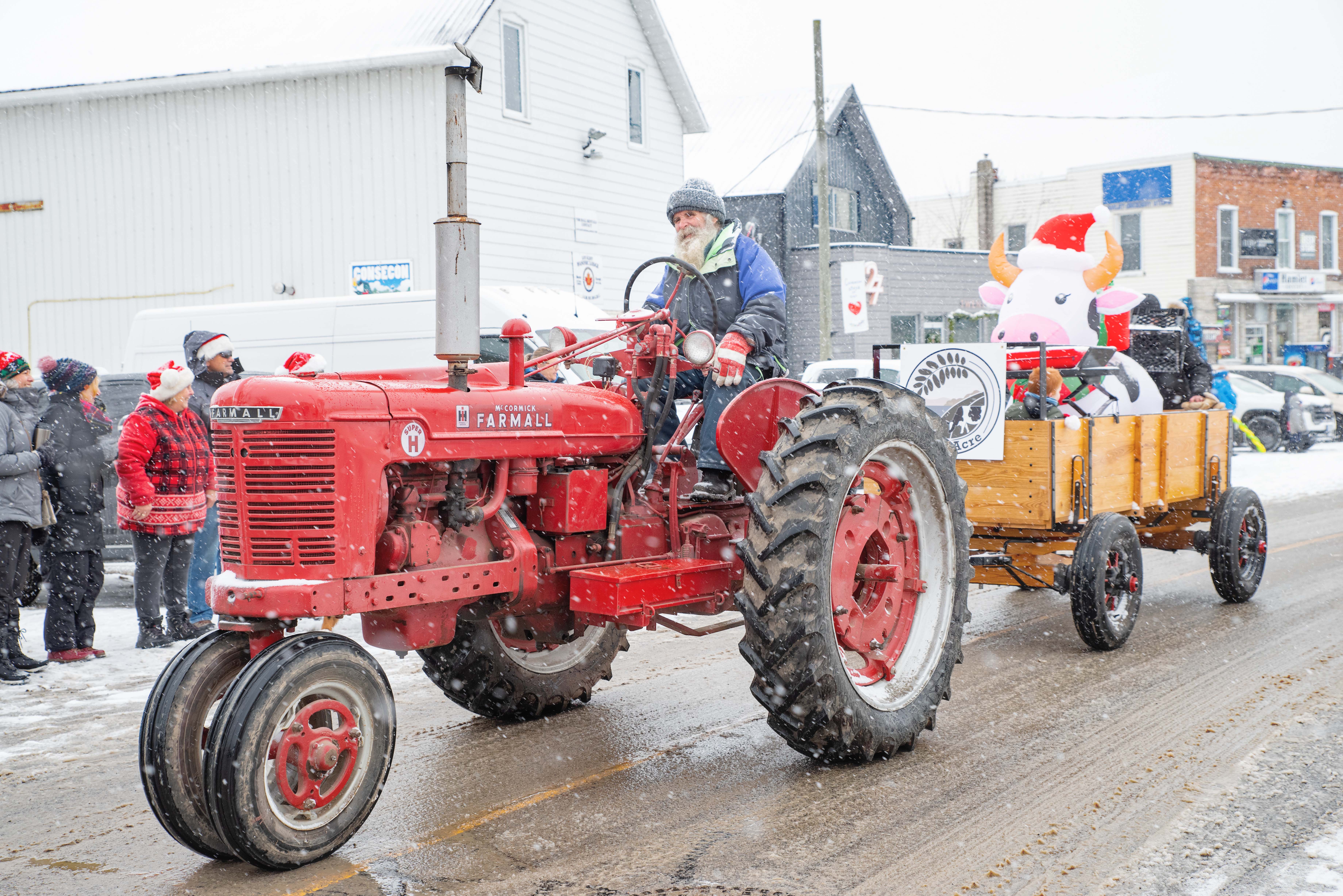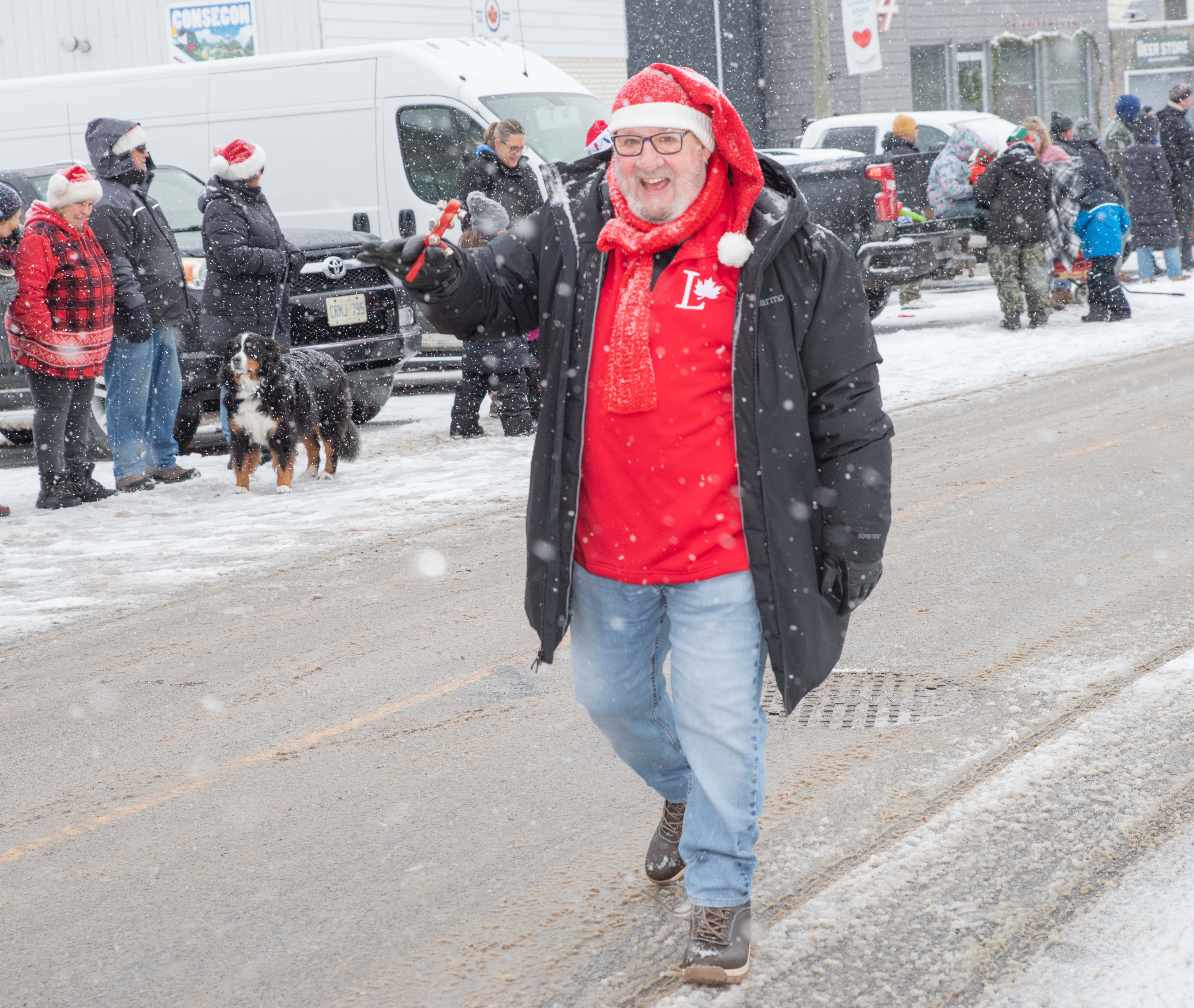 The parade itself was short, but with plenty of enthusiasm. An OPP vehicle led the way, followed by the Legion Colour Party. MP Chris Malette took part in the parade, as well as the mayor and several councillors. The Friends of Wellers Bay had a float, and there were several trucks from the fire department, with staff walking alongside handing out candies. The Belleville Shriners were also in attendance, and there were a number of vintage tractors in the parade too, as well as a super-sized pick-up truck. The star of the parade was undoubtedly Santa on his sleigh, accompanied by his effervescent and bubbly elves.
