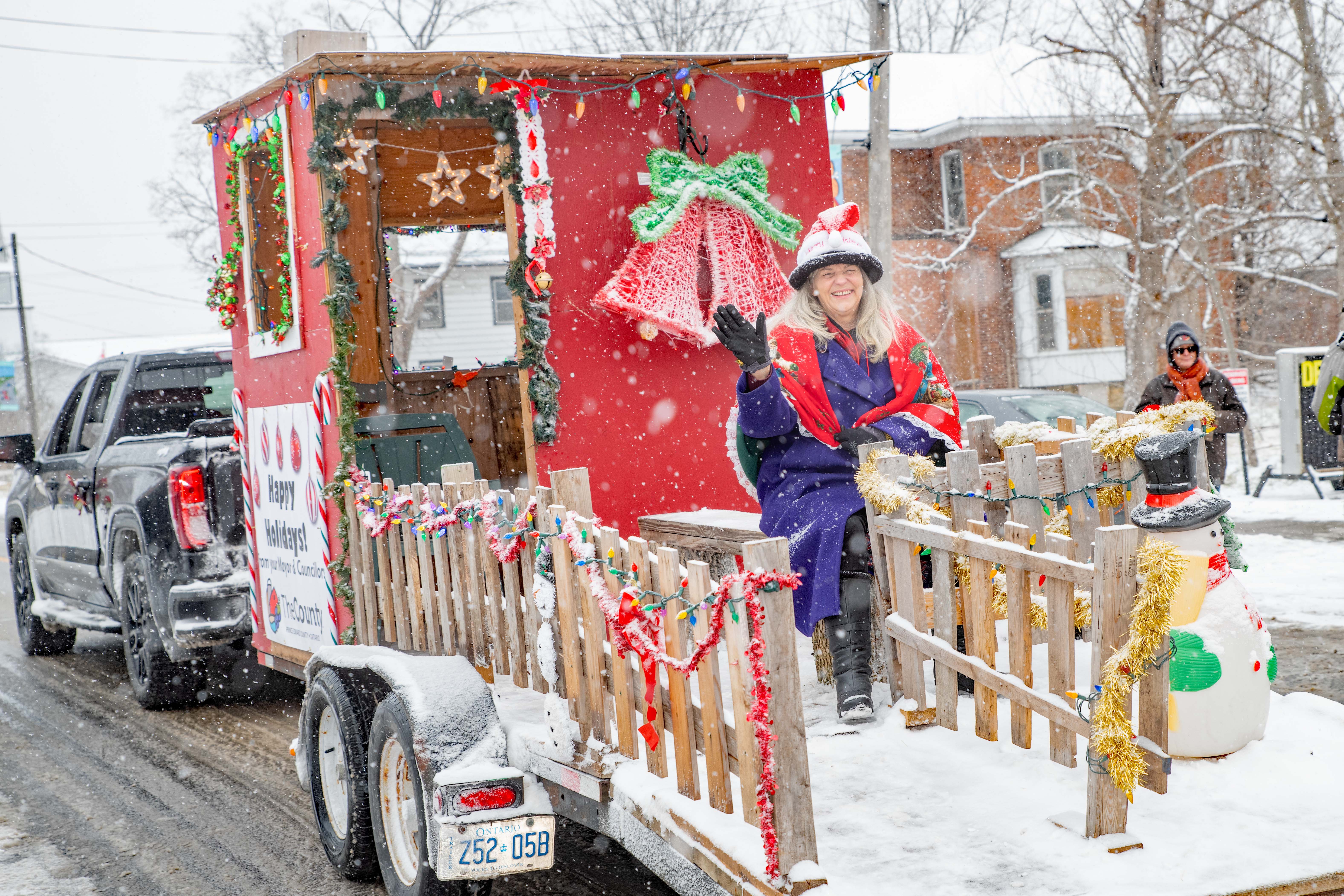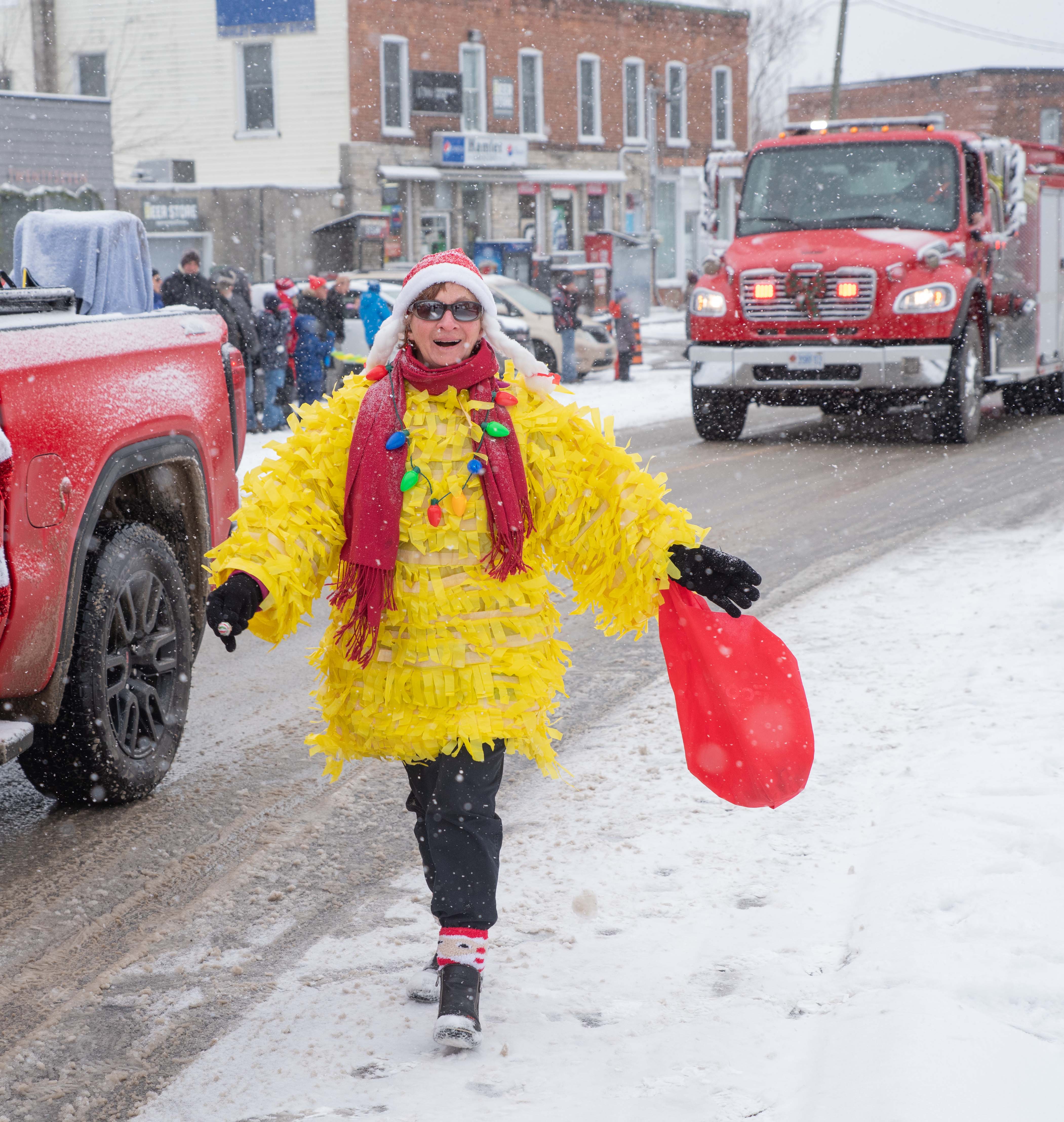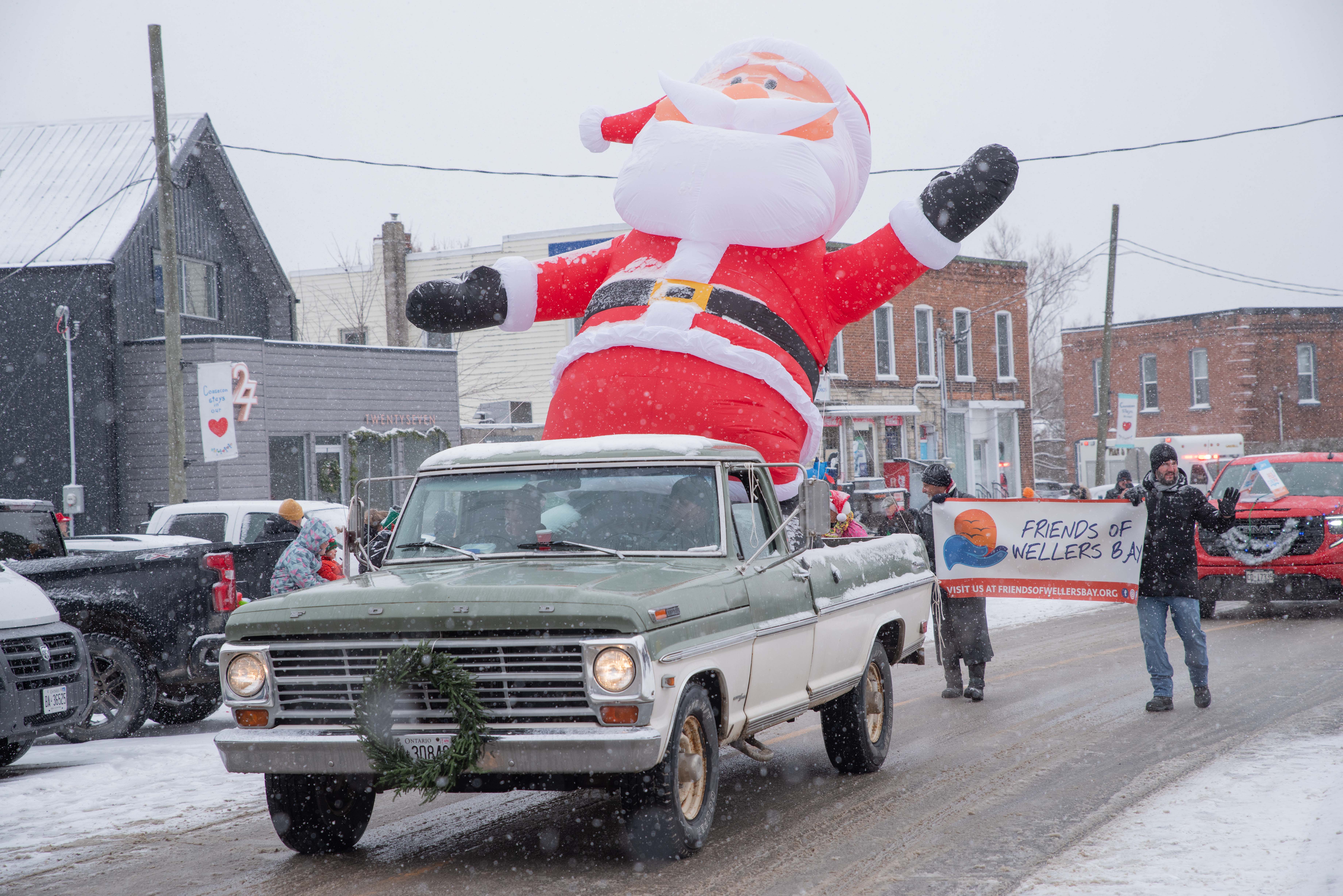 The parade itself was short, but with plenty of enthusiasm. An OPP vehicle led the way, followed by the Legion Colour Party. MP Chris Malette took part in the parade, as well as the mayor and several councillors. The Friends of Wellers Bay had a float, and there were several trucks from the fire department, with staff walking alongside handing out candies. The Belleville Shriners were also in attendance, and there were a number of vintage tractors in the parade too, as well as a super-sized pick-up truck. The star of the parade was undoubtedly Santa on his sleigh, accompanied by his effervescent and bubbly elves.