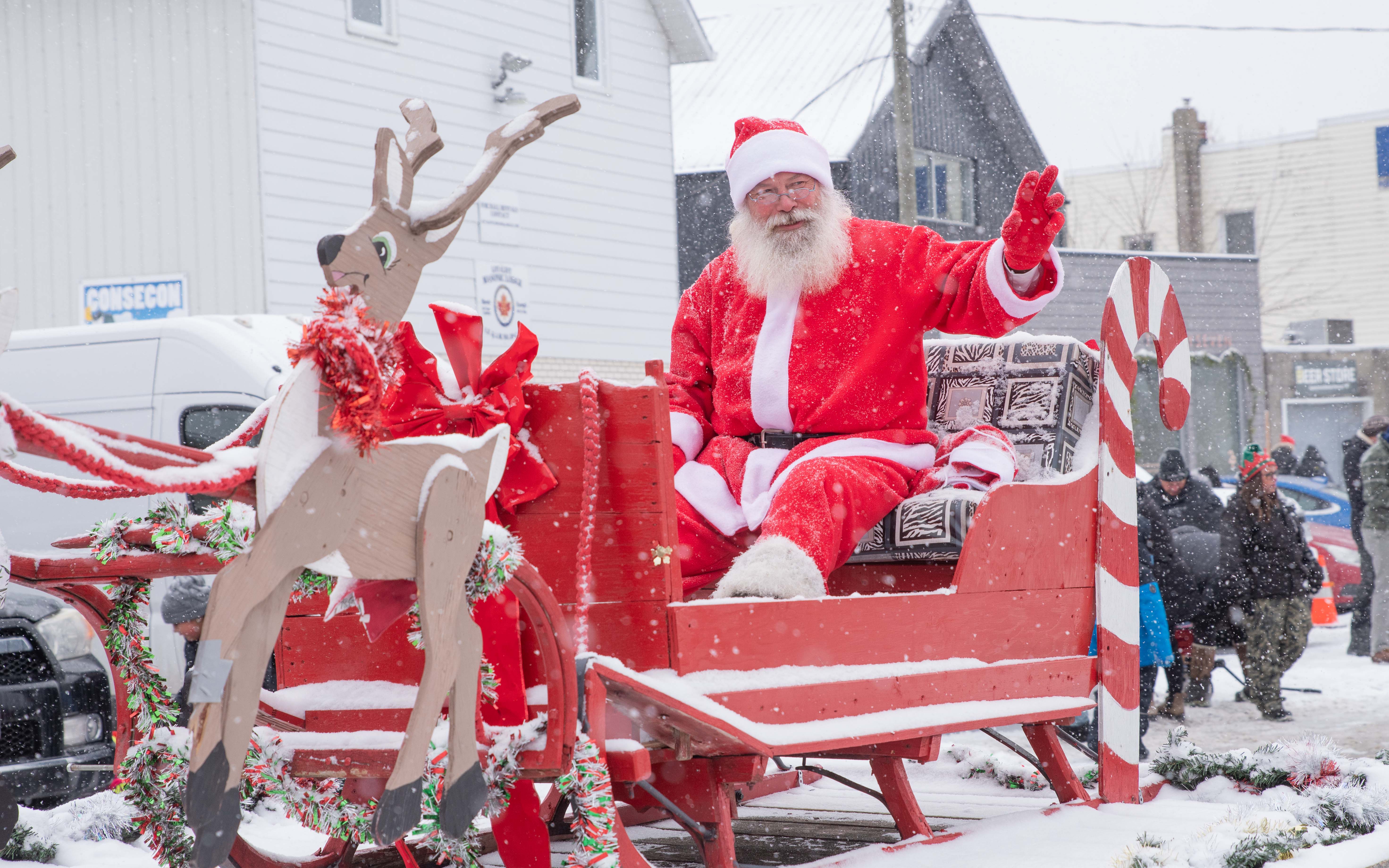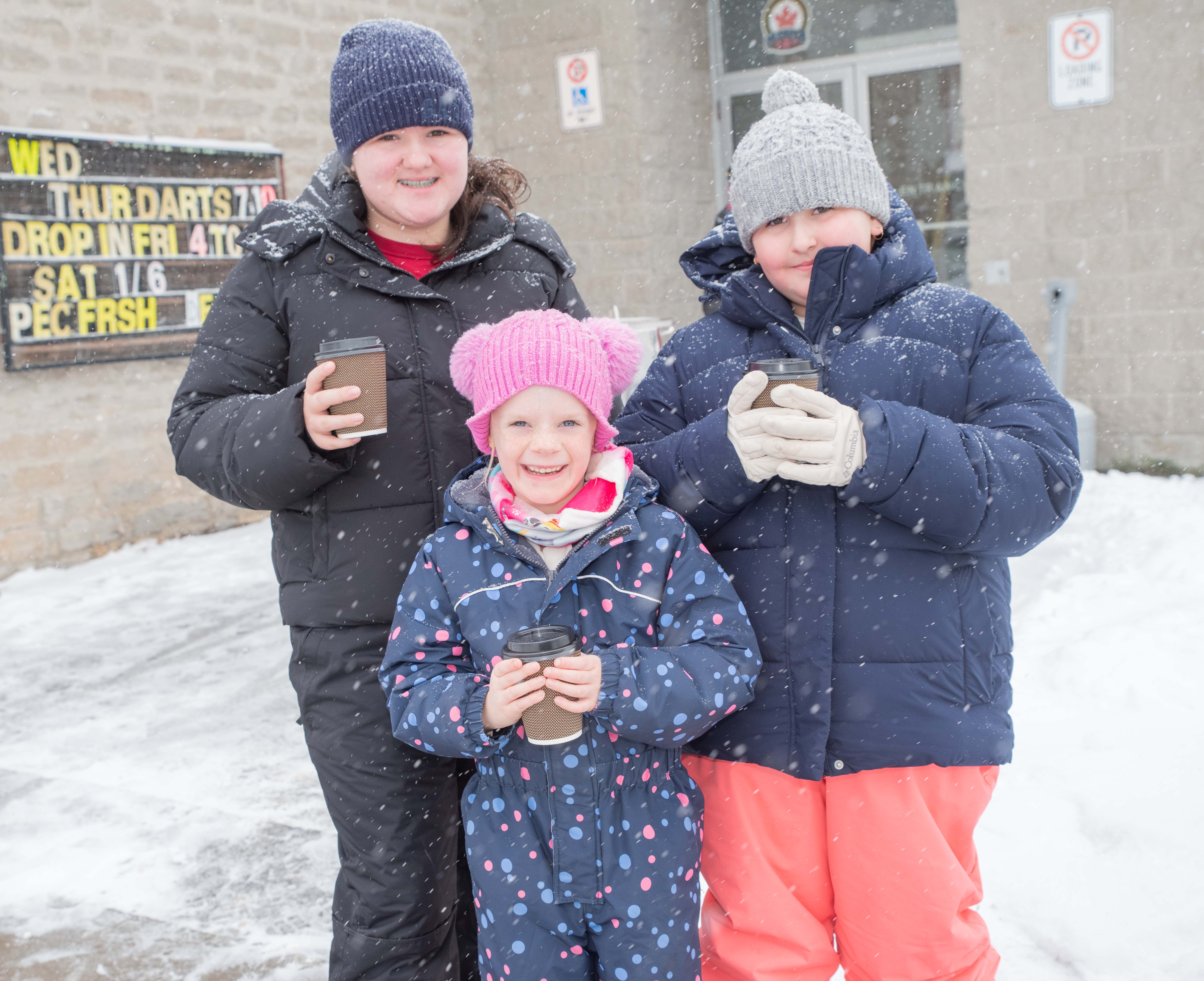 The snowy weather did not deter hundreds of people from attending the annual Consecon Christmas parade on Sunday. Events in the village started earlier in the day with a bake sale at the United Church in support of local foodbanks. The Women’s Institute had their delicious almond bark for sale, and there was a wide array of preserves and baked goods available, as well as a selection of handmade knitted sock, mittens and hats. Volunteers from the Consecon Legion had a table on Main Street offering the welcome warmth of hot chocolate and marshmallows. There were free hot dogs for kids in the Masonic Hall, as well as cookie decorating, face painting and balloon twisting.