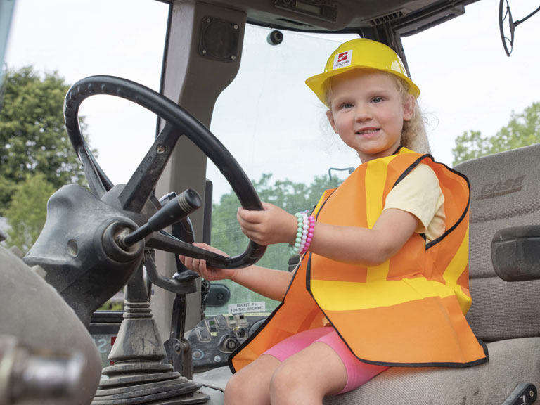 They played a short game of construction “I Spy” where they had to look for things such as hard hats or pylons or trucks on the site. After that, they all got a chance to sit in the cab of the backhoe before heading back inside.
