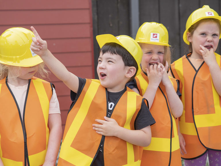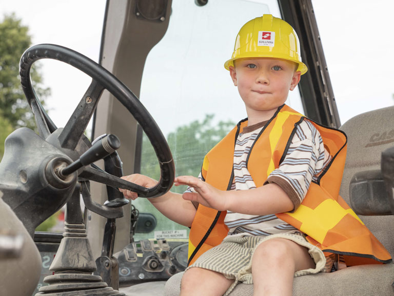 They played a short game of construction “I Spy” where they had to look for things such as hard hats or pylons or trucks on the site. After that, they all got a chance to sit in the cab of the backhoe before heading back inside.