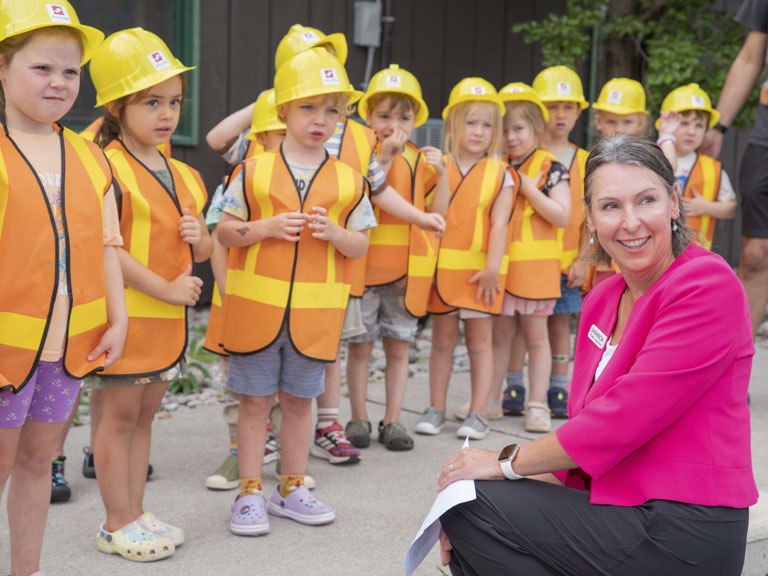 Mr. Roy was delighted to be able to meet the children who have been earnestly watching the construction as it progressed. “I think it’s important to show and have these kids be a part of what we are building. We were all kids at one time and construction seems to be something that piques everybody’s curiosity. And kudos to the construction workers for acknowledging how important it is to show what they are doing and pay attention to these young kids,” he said. Mr. Roy said that construction is on schedule and going well. He noted that this type of mass-timber hospital construction—which he likened to assembling LEGO pieces—is unique in North America and is garnering worldwide attention. Construction is expected to be complete in January, 2027.