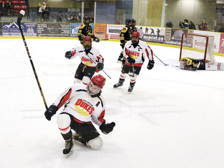 Sunday’s match was a wee microcosm of the Dukes’ season so far. Wellington jumped out to a 3-1 lead in the first, on goals from Sacha Trudel and a pair from Landon Marleau. The lone Tigers’ goals in the first frame came with the Dukes shorthanded with a man in the penalty box.